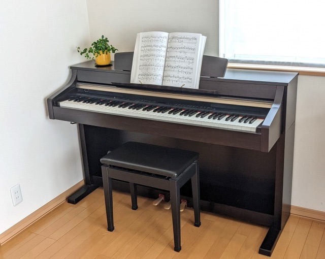 大きさも本物のピアノ(アプライト)、電子ピアノ(足付きペダル付き)共に88鍵盤の横幅はそれなりにあり、置き場所の問題もあるのでご家族でよく相談して下さいと皆さんに提案しています。