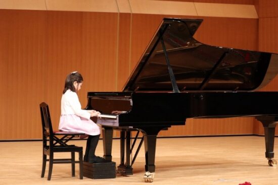 まず、Aちゃんはお辞儀も上手に出来ました。私と一緒に連弾を2曲、1人で「メリーさんの羊」を普段通り弾けて、初めてなのに緊張してないのかな?と思うほどでしたが、お辞儀に出る前にドレスの外側の生地をギュッと両手で握りしめていた姿を見ていたので、緊張していたのだなと感じとれ、本当によく頑張ったね、Aちゃん。